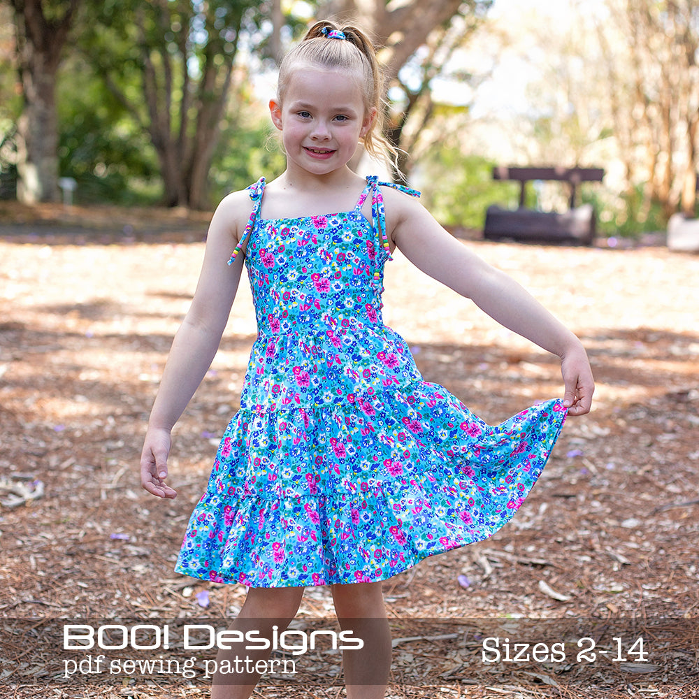The dress bodice and tiered skirt are interchange with other pattern pieces from our Skater Dress Family to create endless options!