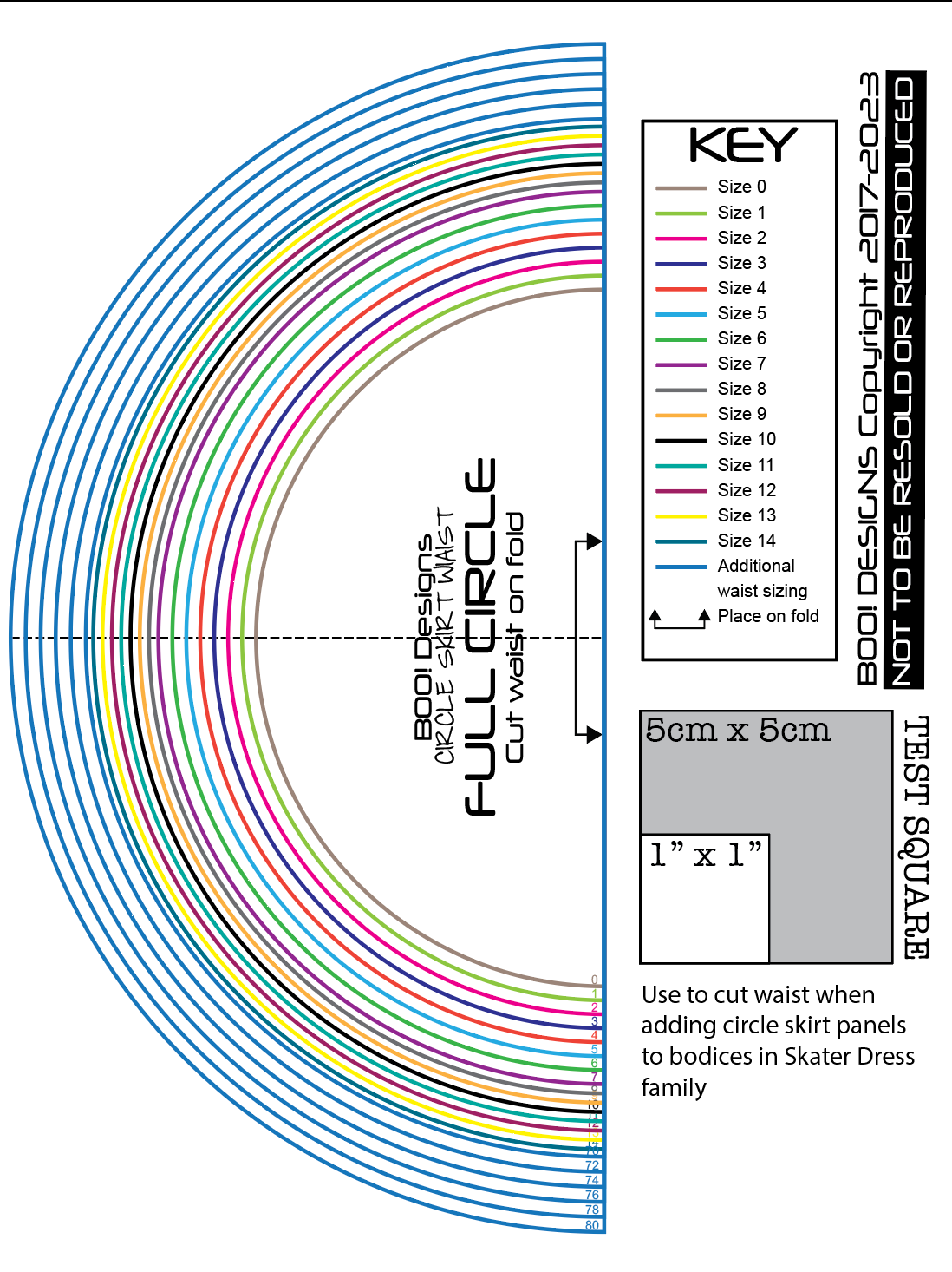 Sizes 0-14 WAIST CUT GUIDE to use for BOO! circle panels
