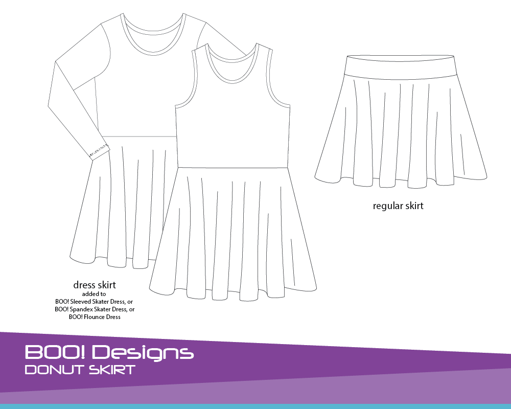 If you haven’t tried BOO! patterns before this is a great way to ‘try before you buy’! If you love the donut skirt, you may also like the spandex skater dress or sleeved skater dress!
