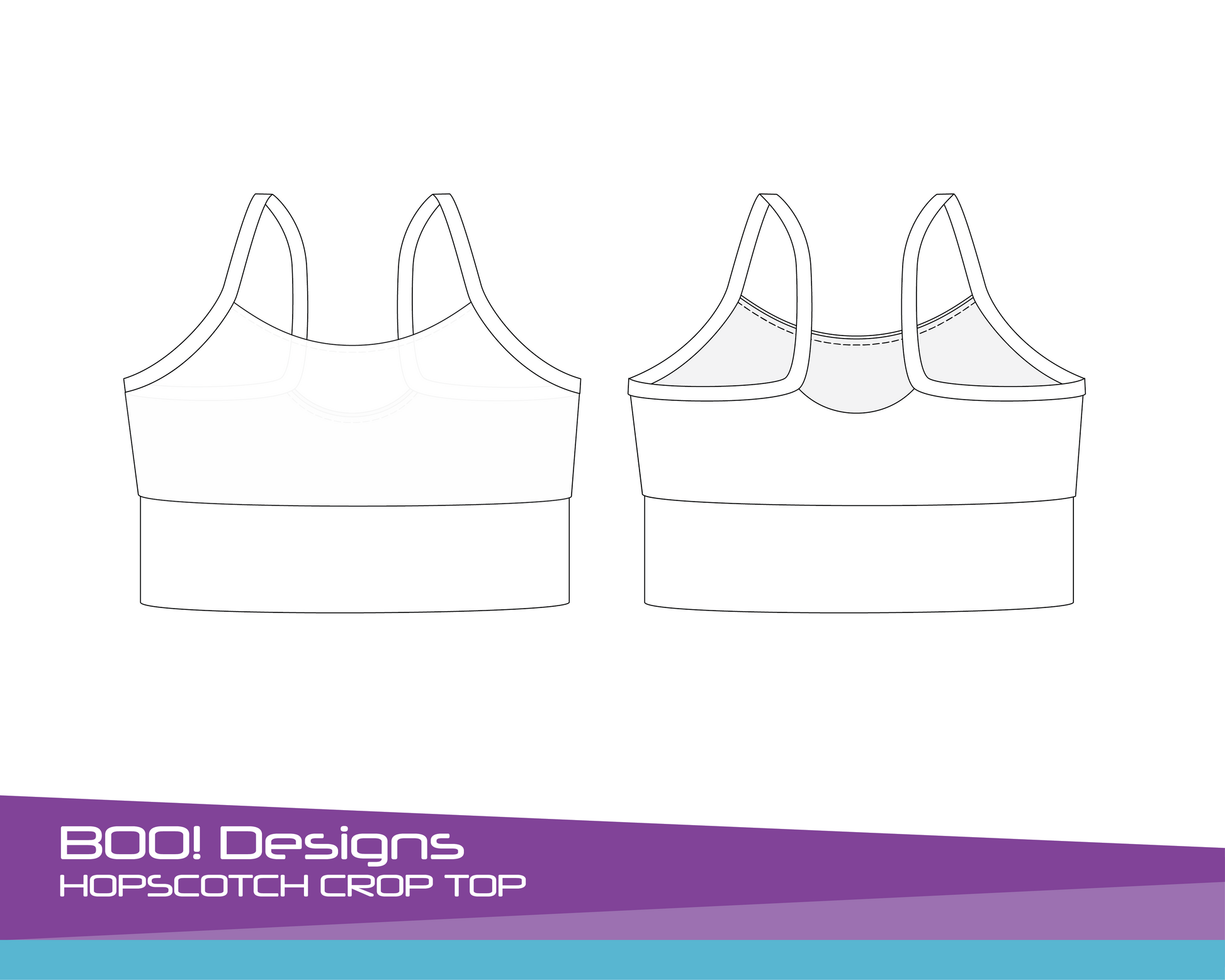 The Hopscotch Crop Top pattern includes a lined crop perfect for activewear, dance, gym or swim. It's a great scrap buster project. It can be made with 6mm or 10mm straps.